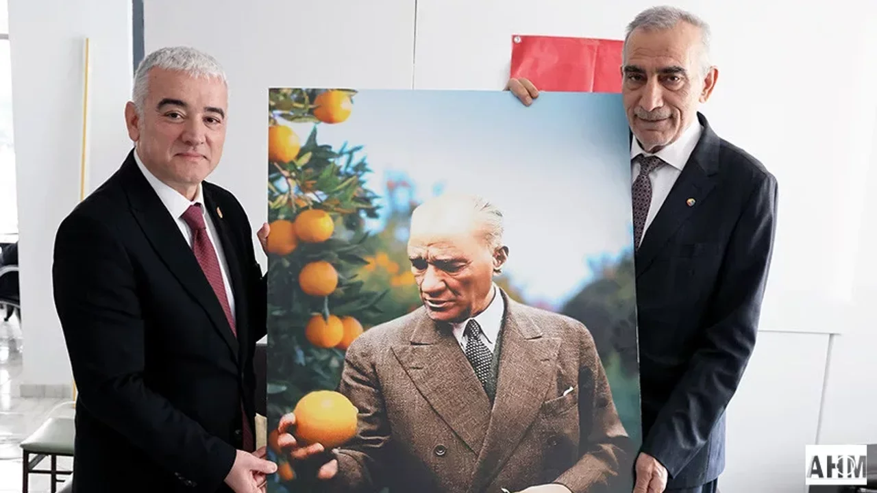 Samimi bir atmosferde gerçekleşen ziyarette Başkan Kurtul Çakın’a Cumhuriyetimizin Kurucusu, Büyük Önder Mustafa Kemal Atatürk’ün Mersin ziyaretinde portakal bahçesinde portakal soyarken çekilmiş büyük boy fotoğrafını armağan etti.